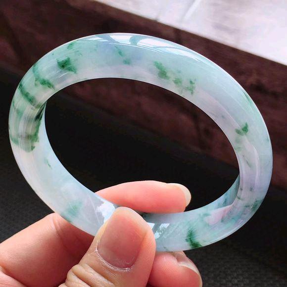 【缅甸翡翠】w0819-12缅甸翡翠 55.6冰飘花翡翠手镯玉手镯缅甸玉石手镯